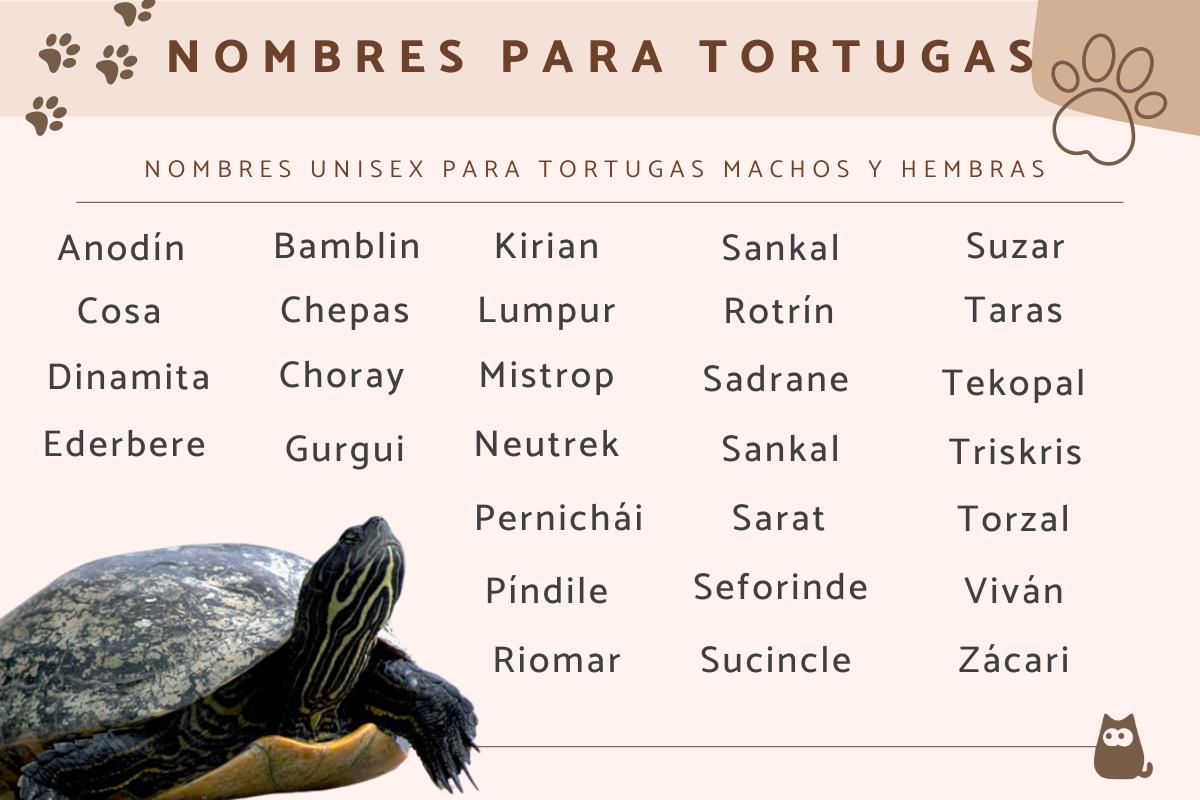 En muchas ocasiones desconocemos el sexo de nuestra tortuga y precisamos un nombre ambivalente que case y quede bien con ambos géneros. Seguidamente exponemos algunas ideas: