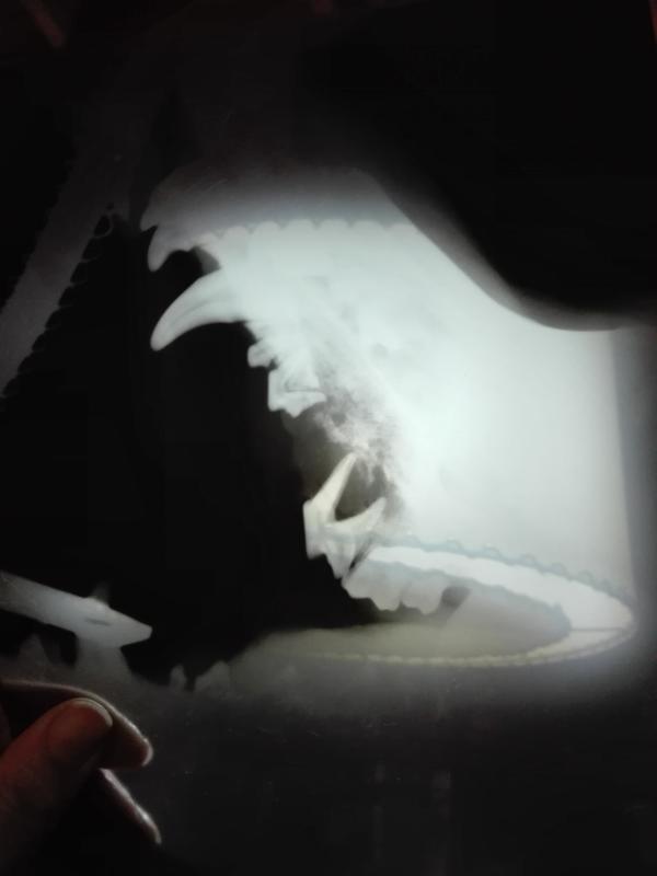 Hola estoy angustiada. Tengo un labrador de un año q habia empezado con una inflamación en el hocico y sangrado apenas de nariz del mismo lado. Cuando fuimos la semana pasada nos dio Prednisolona 20mg y cefalaser 500 pensando qera inflamacion por un diente . Hoy volvimos porq seguia igual, aunq siempre con muy buen animo Thor le hicieron placa y salio esto q mando, q le falta parte del.hueso maxilar. Le hicieron una.biopsia y ahora tengo q esperar resumtado, pero el doc me dijo q un 80%es tumor y podria llegar a amputar . Estoy muy triste, como sigo? Que debo hacer si sale positivo? Dios no quiera. No hay posivilidad q sea otra cosa? Thor es mi vida 😞