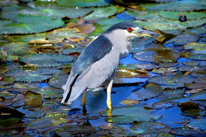 Esta garza es un poco mas pequeña en comparación con otras y no destaca por tener un cuello tan largo como acostumbran a tener las aves de su familia. Físicamente, se distingue por su plumaje blanquecino en la parte inferior y su plumaje negro-grisáceo en la parte superior, además de sus intimidantes ojos rojos.