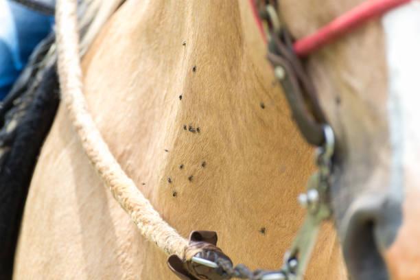 - Tábanos: son especies de moscas pertenecientes a la familia Tabanidae. Son hematófagas, es decir, se alimentan de sangre y algunas especies son afines a los equinos. Su picadura es bastante dolorosa, por lo cual causa problemas de estrés al ejemplar.
