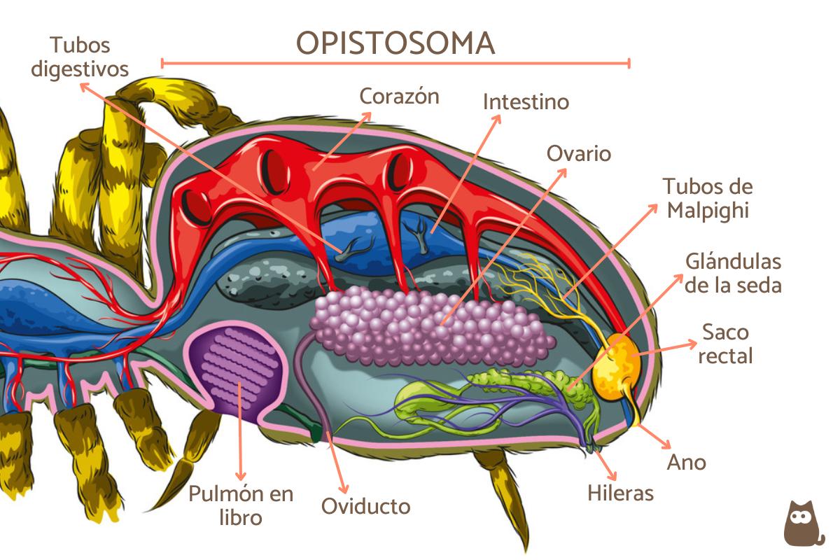 El opistosoma, más conocido como abdomen, corresponde con la parte posterior del animal que, como hemos dicho, se une a la anterior mediante una especie de cintura. Carece de apéndices y también recoge una serie de órganos vitales para las arañas. Esta parte del cuerpo de las arañas se une al pedicelo, que es esa especie de cintura muy flexible, lo que le permite movilidad al abdomen hacia todos lados al momento de tejer las redes.