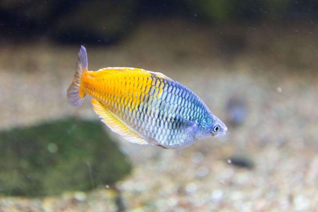 El Melanotaenia boesemani es un pez muy popular entre los amantes de los acuarios, debido a su atractivo colorido que, sin embargo, decae un poco cuando es criado en cautiverio. Proveniente de Asia, y hoy puede encontrarse en todo el mundo. Al igual que el guppy, es un excelente nadador y su carácter es pacífico. Prefiere vivir en cardúmenes de su propia especie, por lo que se recomienda considerar el tamaño del acuario a la hora de introducirlo como compañero de otros peces.