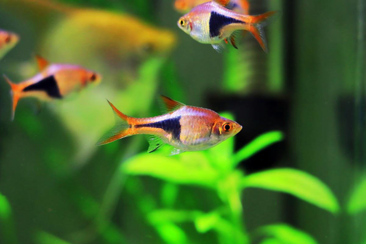 Estos peces son una excelente opción para convivir con neones. Miden alrededor de 5 cm y comparten requisitos similares de agua y temperaturas de entre 22 y 28°C, así como un pH ligeramente ácido (6.0-7.0). Son peces pacíficos y gregarios que prefieren nadar en cardumen, lo que los hace compatibles con los neones. Un acuario bien plantado, es decir, con varias plantas vivas, con espacio para nadar es ideal para ambas especies. Mantén a los arlequines en grupos de al menos 6 individuos.