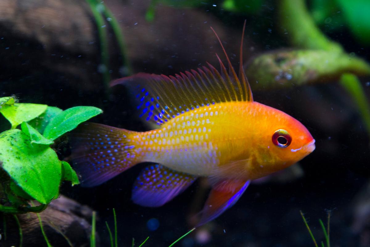 Los ramirezi son peces tranquilos y coloridos que pueden convivir con neones en acuarios bien estructurados. Miden alrededor de 5 cm y prefieren temperaturas entre 24 y 28°C, lo que los hace compatibles con los neones. Son peces que no representan una amenaza para los neones, siempre y cuando el acuario tenga suficientes escondites y plantas. Un acuario de al menos 60 litros es recomendable para mantener ambas especies.