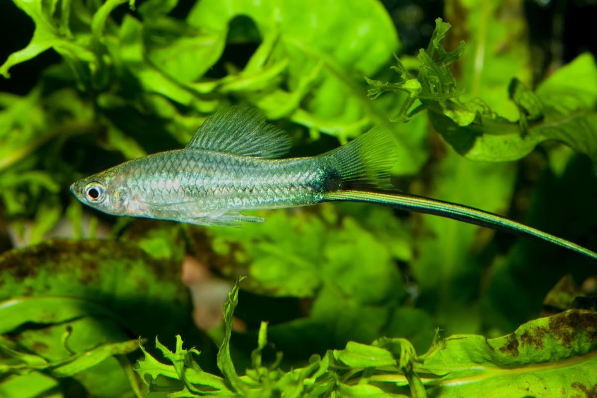 Esta especie es originaria de América Central, desde Veracruz hasta el noroeste de Honduras. Los machos alcanzan hasta unos 14 cm y presentan una característica "espada" en la parte inferior de la aleta caudal, mientras que las hembras, algo más grandes, carecen de esta prolongación. Su color natural es verde oliva con una línea roja o marrón en los costados. Es omnívoro y habita en ríos y arroyos de corriente rápida con vegetación abundante. Ha sido criado en cautividad en múltiples variedades de colores llamativos. Se ha convertido en una especie invasora al ser introducido en otros países, amenazando ecosistemas locales debido a su alta capacidad reproductiva.