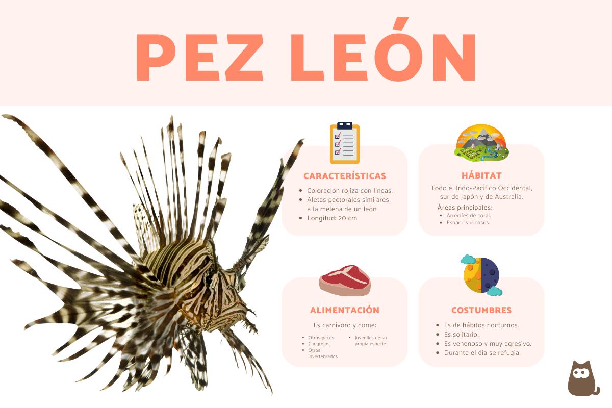 En esta ficha de ExpertoAnimal compartimos información sobre el pez león, como sus características principales, dónde vive y qué come. Así mismo, hablamos sobre cómo afecta su presencia en los ecosistemas donde ha sido introducido. ¡Sigue leyendo!
