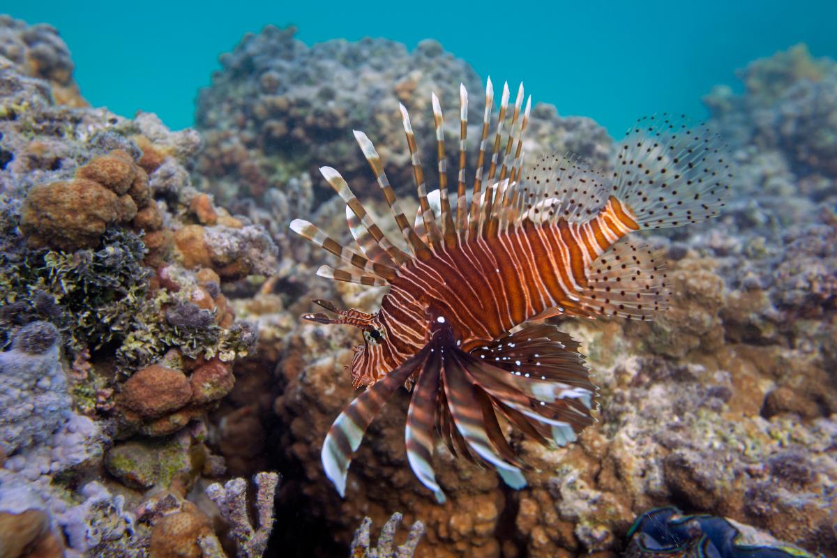 Entre la fauna que ha conquistado a los océanos encontramos a los peces, un grupo de animales vertebrados con una amplia diversidad de formas, tamaños, colores y hábitos. En este grupo tan amplio tenemos especies muy particulares, como las ubicadas en la familia Scorpaenidae y específicamente en el género Pterois. Son peces peligrosos para los seres humanos, caracterizados, además, por su belleza, con espinas y coloraciones que les permite camuflarse muy bien. Algunos miembros del género son animales exóticos invasores, como el conocido como pez león (Pterois antennata).