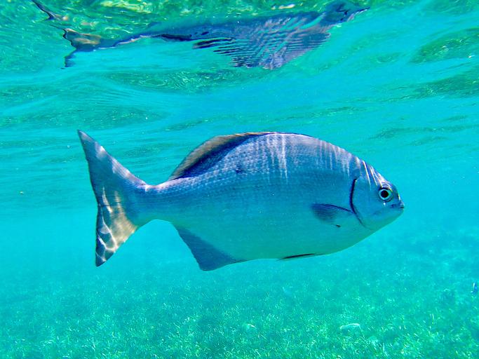 Posee un cuerpo ovalado y comprimido de unos 50 cm de largo, de color grisáceo con características franjas naranjas a los lados del cuerpo, y con la presencia de una sola aleta dorsal. Es una especie gregaria que siempre nada en compañía y, aunque los adultos son herbívoros, los juveniles son omnívoros. Siempre nadan en compañía y consumen varios tipos de algas, en particular se alimentan de especies exóticas tóxicas, lo que ha llevado a que su consumo pueda causar problemas de salud en humanos. Al tratarse de las pocas especies de peces herbívoros presentes en el Mediterráneo, cumplen un importante rol en la mantención de todo su ecosistema.