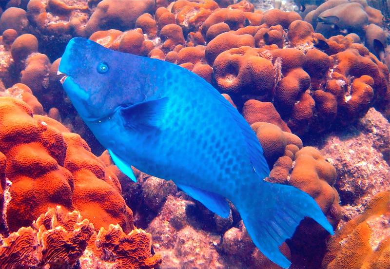 Perteneciente a la familia Scaridae, este pez loro se distribuye en zonas tropicales y subtropicales al oeste del océano Atlántico y Mar Caribe, donde habita aguas poco profundas con fondos arenosos y arrecifes de coral. Alcanza una longitud de 30 a 80 cm y se caracteriza por ser de color azul intenso y por poseer un “pico” en su boca, formado por las mandíbulas, así como una llamativa joroba en la cabeza que puede estar presente tanto en machos como hembras.