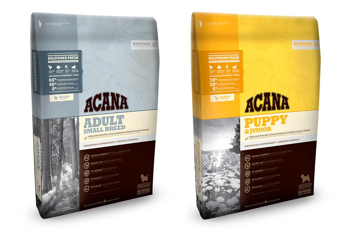 - Heritage: esta gama se clasifica en variedades adaptadas a la edad y al tamaño del perro. Así, encontramos pienso para cachorros hasta el año de vida y para adultos de razas pequeñas, hasta 9 kg de peso adulto, medianas y grandes, para perros de actividad elevada, para aquellos que necesitan adelgazar y para los senior. La gama se caracteriza por llegar a un contenido en carne del 60-75 %, con un tercio fresca y dos tercios seca. No contiene cereales y la receta se completa con vegetales y frutas. En la composición de todos estos piensos destaca el pollo de corral, los huevos y la platija. El resto de ingredientes son similares a la receta de la gama Classics. La variedad para perros activos aumenta hasta un 75 % de carne. La de dieta se queda en el 65 y baja en hidratos de carbono para controlar la acumulación de grasa corporal. Por su parte, la senior se recomienda a partir de los siete años de edad. También reduce el aporte de hidratos para evitar la obesidad y los problemas de ella derivados al pensarse para animales que, normalmente, van a realizar menos ejercicio.
