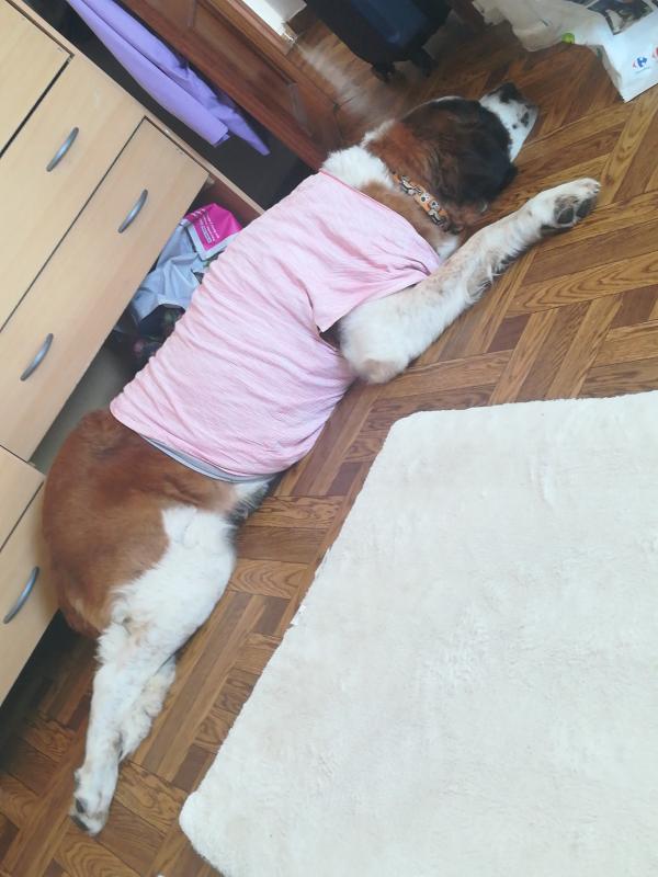 Mi perra san Bernardo presenta flujo rosado , está esterilizada desde sus 10 meses aproximadamente viajamos de mex a Madrid , el 1ro de marzo , hace unos semana se enfrió y tenía carraspera , ya de eso está mucho mejor pero empezó con este asunto.