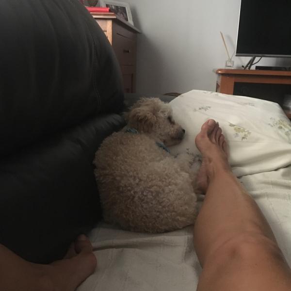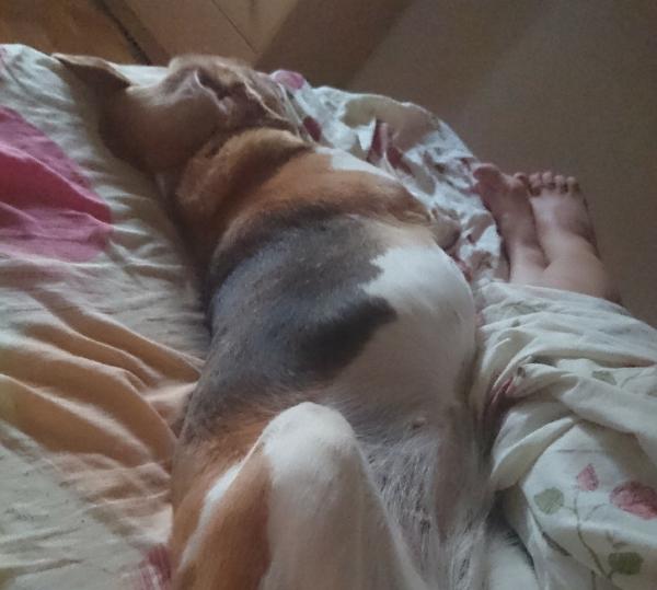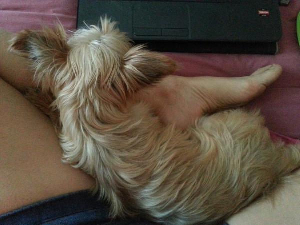 Mientras uso el ordenador... a mi se me "duerme la pierna y el pie" pero ni me muevo porque me da pena despertarle..