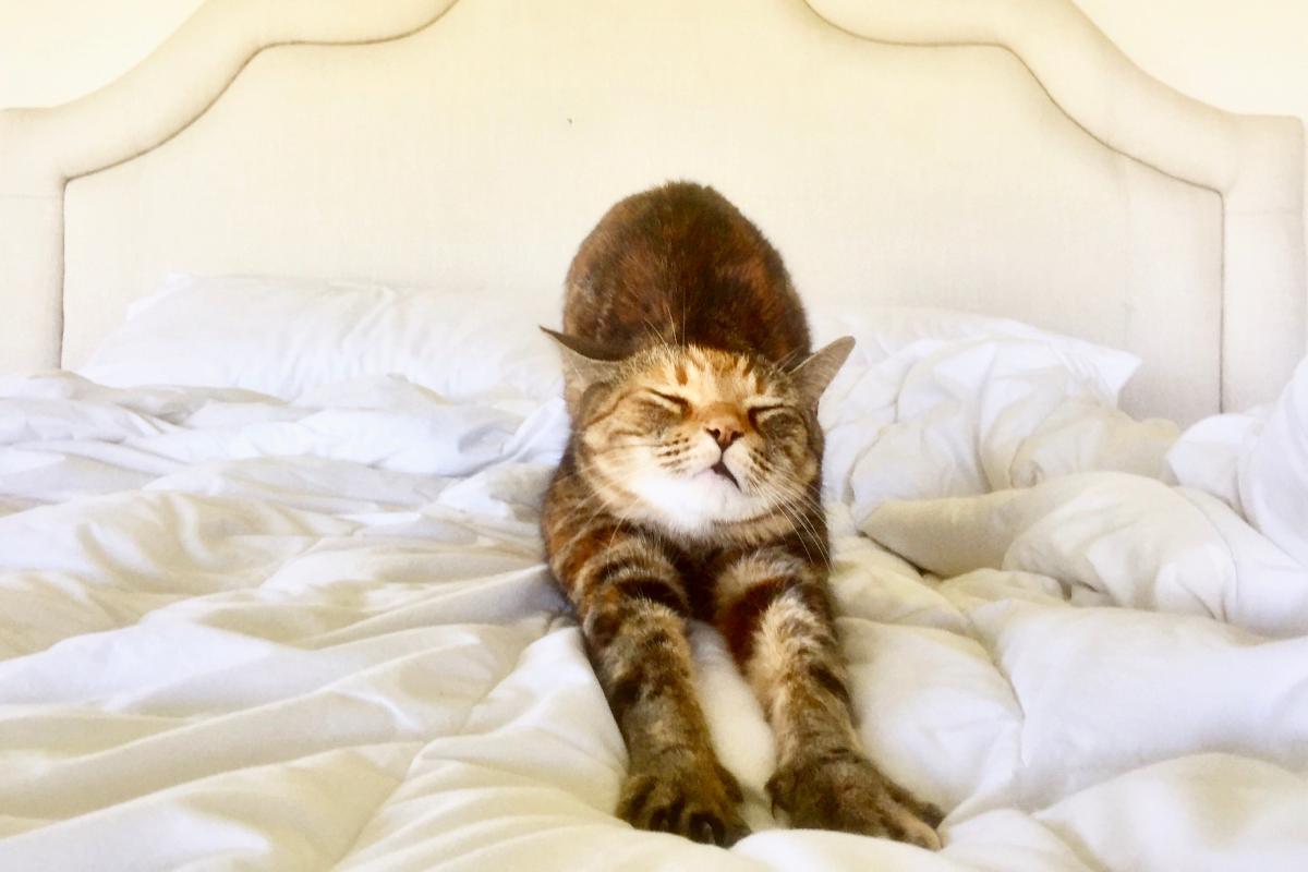 No es ningún secreto que los gatos adoran estirar todos y cada uno de los músculos de su cuerpo. Por este motivo, el gato aprovechará para estirarse después de un agradable tiempo de descanso, ya sea encima tuyo o de un sofá, amasando también como muestra de satisfacción. En este caso, además, es habitual observar que los gatos abren y cierran las manos mientras se estiran.