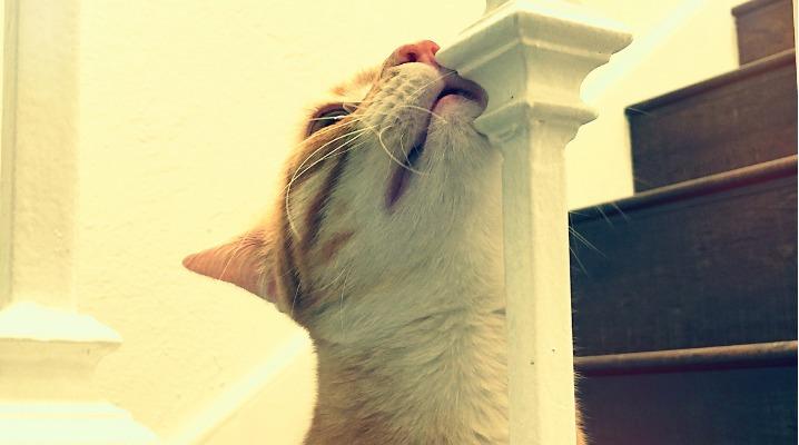 Por tanto, cuando un gato frota su cara contra un objeto o incluso las piernas de su compañero humano, lo está explorando y marcando como objeto conocido y seguro. Es normal que justo después de rozarse, lo huela con su órgano vomeronasal, para cerciorarse de que el objeto ha sido marcado correctamente, además se produce un estímulo positivo y agradable en su cerebro. De esta manera, crea en el hogar un olor común que le es familiar y le indica que puede sentirse seguro ahí. De hecho, en las colonias de gatos o en hogares multigato, que varios individuos se rocen por los mismos objetos crea una especie de “olor de rebaño”. Esto tiene un efecto unificador para el grupo de gatos que conviven juntos.