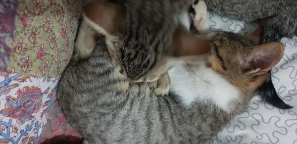 Hola ..tengo dos mininos de 3 meses..no son hermanos ......cada q duerme..el uno mínimo..le chupa la pancita al otro......y así se queda descansando
