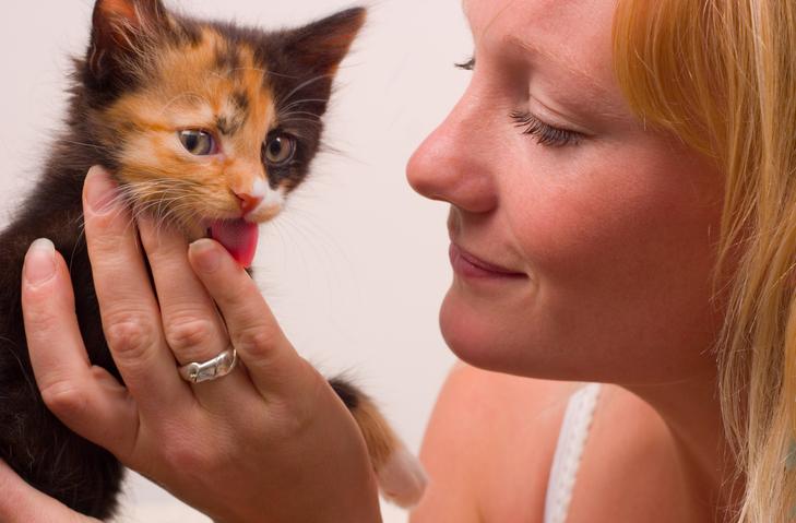 Por muy mayor o independiente que sea un gato, en nuestra presencia vuelve a ser un gatito, debido al proceso de domesticación en el que hemos basado nuestra relación con estos felinos. Cuando nuestro gato nos quiere asear se encuentra con el problema de la diferencia de altura. Es por eso que muchas veces se frota contra nuestras piernas y da pequeños saltos, intentando estar más cerca de nuestro rostro. Si estamos dormidos, aprovechará para lamernos la cara y se verá incitado a ello porque nos encontramos en un momento de especial relajación, que es el que siente durante el aloacicalamiento.