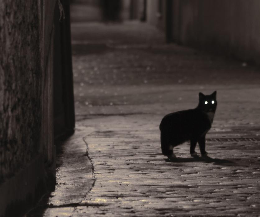 Por naturaleza, el gato es un animal nocturno que prefiere la oscura noche para salir a cazar, alimentarse y realizar su actividad diaria. Debido a la evolución de la especie para sobrevivir en estado salvaje, goza de una excelente visión nocturna, la cual le permite ver mucho mejor en un ambiente con luz tenue que en uno completamente iluminado o con luz diurna. Esto es así gracias a la anatomía del ojo, adaptada para cazar por la noche, compuesta por un tejido ocular llamado tapetum lucidum que tiene la capacidad de absorber la luz antes de llegar a la retina. Una vez absorbida, este tejido la refleja y proporciona al animal una visión mucho más desarrollada en la oscuridad.