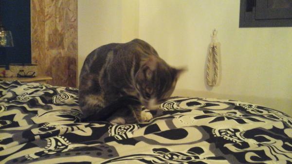 Mi gato se muerde la cola, sin hacerse daño, muy a menudo, cada vez que se va a acostar, pues antes hace eso la muerde y la chupa, y se introduce bastante tramo de ella por la garganta, como unos tres cm, aproximadamente. Es un gatito de siete meses aproximadamente. Hace que tiene esa conducta unos tres meses. Y he intentado disuadir lo de dicha conducta de muchas maneras pero soy incapaz de hacérsela olvidar. Y cuando está mordiendola y chupandola como se la quites de la boca, se coger un gran mosqueo , gruñe y a veces hasta ataca.
