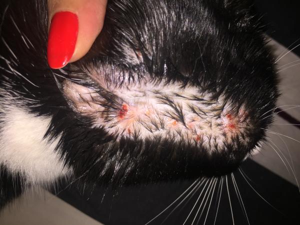 Hola a mi gatito viejito le apareció de la nada un puntito, se rasco mucho y ahora se ha hecho una peladura cerca de su ojo y detras de su oreja y se le hizo como un pliegue en forma de zig zag. Tenemos otra gatita y perrita que no tienen nada de nada, no sabemos que pueda ser. Gracias