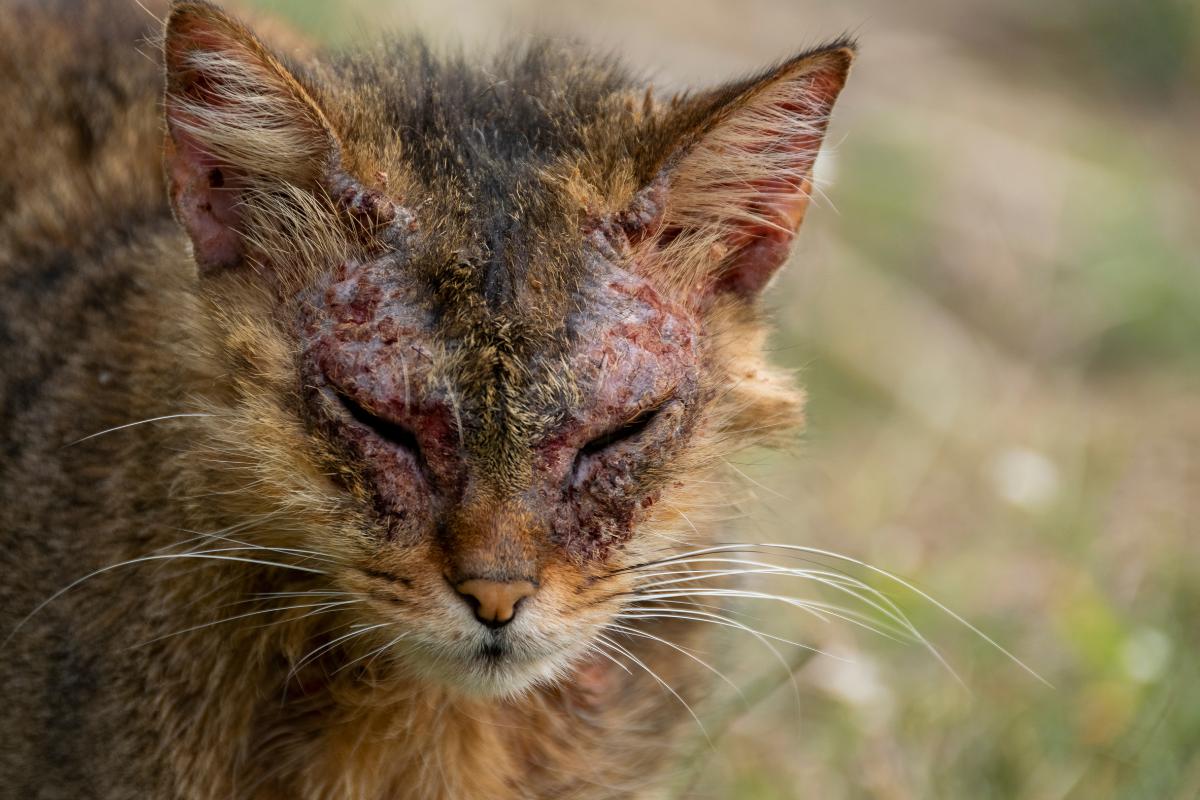 La sarna es otro de los motivos que pueden explicar las calvas en los gatos. Existen varios tipos, como la sarna demodécica o la notoédrica. Tienen en común que todas están provocadas por ácaros. En ocasiones, producen un picor muy intenso que lleva al gato a rascarse y lamerse sin parar, lo que puede acabar por causar lesiones, además de la falta de pelo, como heridas o enrojecimiento de la piel.