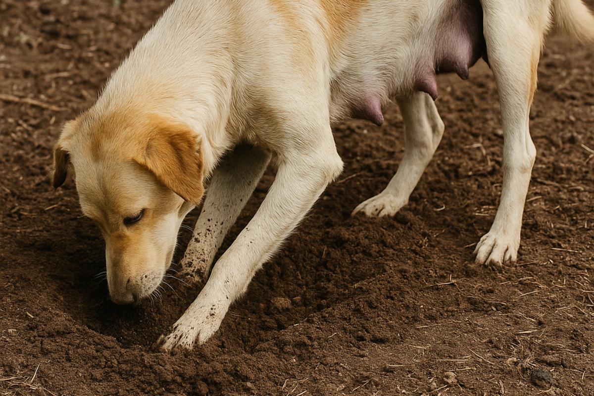 ¿Por qué mi perra recién parida escarba?