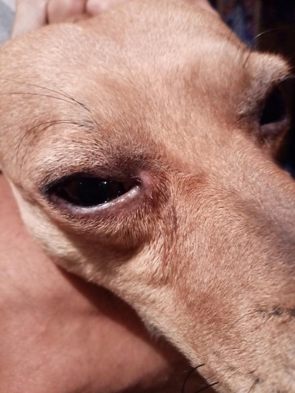 Mi perrita tiene un poquito rojo en un ojo y se lame la patica y se la pasa por la jetica