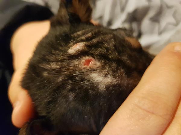 Mi perro tiene 2 meses y tiene 4 heridas pequeñas en su cabeza y cuello. No le pica, no se rasca.