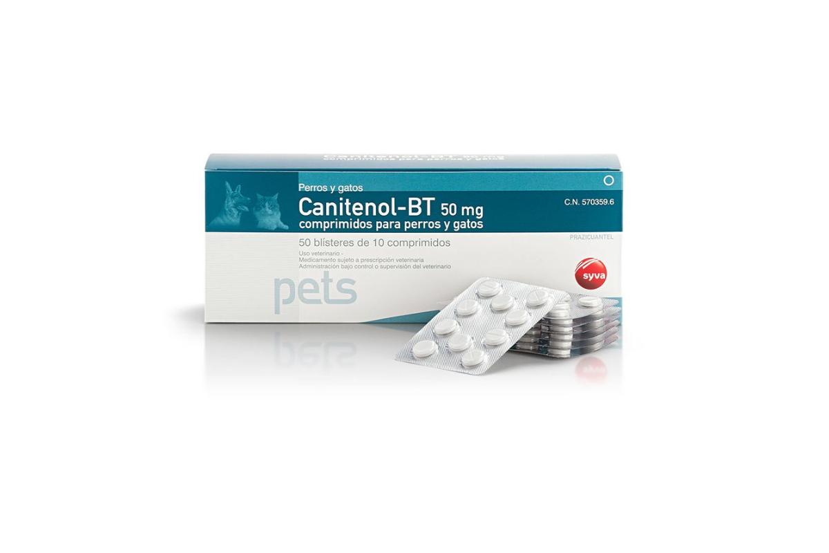 La dosis de praziquantel indicada para el tratamiento de las infestaciones por tenias en nuestros perros es de 5 mg de praziquantel/kg, lo que equivale a un comprimido por cada 10 kg en una sola toma del medicamento Canitenol-BT 50 mg comprimidos para perros y gatos. El esquema de dosificación de este medicamento, que contiene el principio activo praziquantel, es el siguiente: