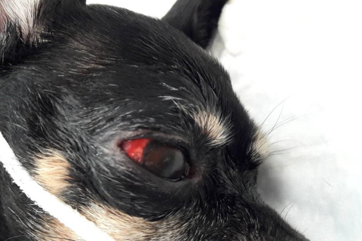Los cuidadores que detecten o sospechen una posible proptosis ocular en su perro deben proteger el ojo para evitar que se deseque y se produzca un daño mayor. Para ello, se deben mojar unas gasas con suero o agua y colocarlas sobre el globo ocular prolapsado.