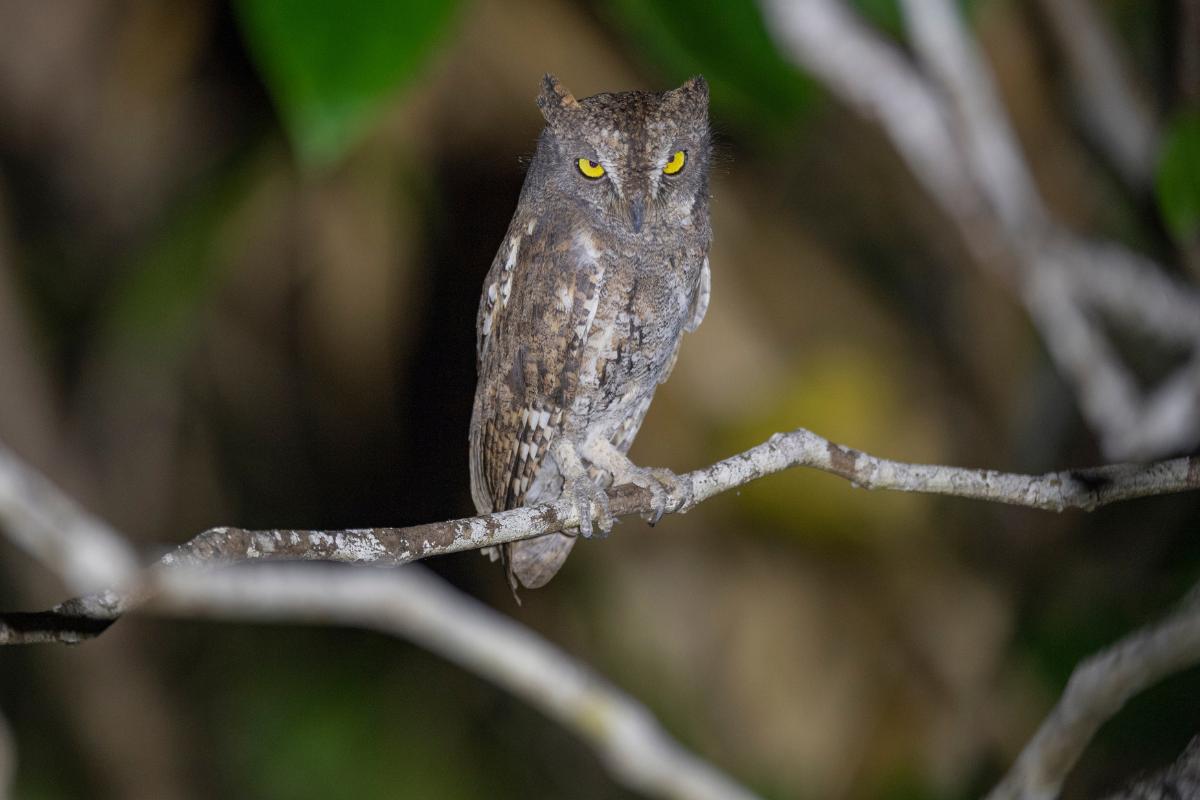 Es un búho de amplia distribución desde Senegal hasta Liberia y en la oriental desde Sudán hasta Kenia. Mide entre 16 y 21 cm, con una envergadura de 50 a 64 cm y un peso de 60 a 135 g. Las hembras son más pesadas que los machos.
