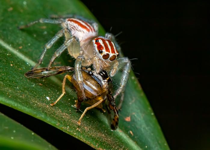 Entonces, si los quelíceros sirven para morder y/o inyectar veneno, ¿las arañas son carnívoras? La respuesta es que sí, la mayor parte de las arañas son carnívoras. Tan solo existe una excepción conocida, una araña herbívora que veremos después.