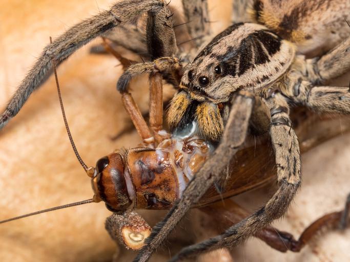 Las arañas son animales depredadores que capturan a otros artrópodos y les inyectan veneno para paralizarlos o matarlos antes de comérselos. En realidad, la mayoría de las arañas no se comen a sus presas, sino que absorben sus líquidos internos hasta dejarlas completamente secas.