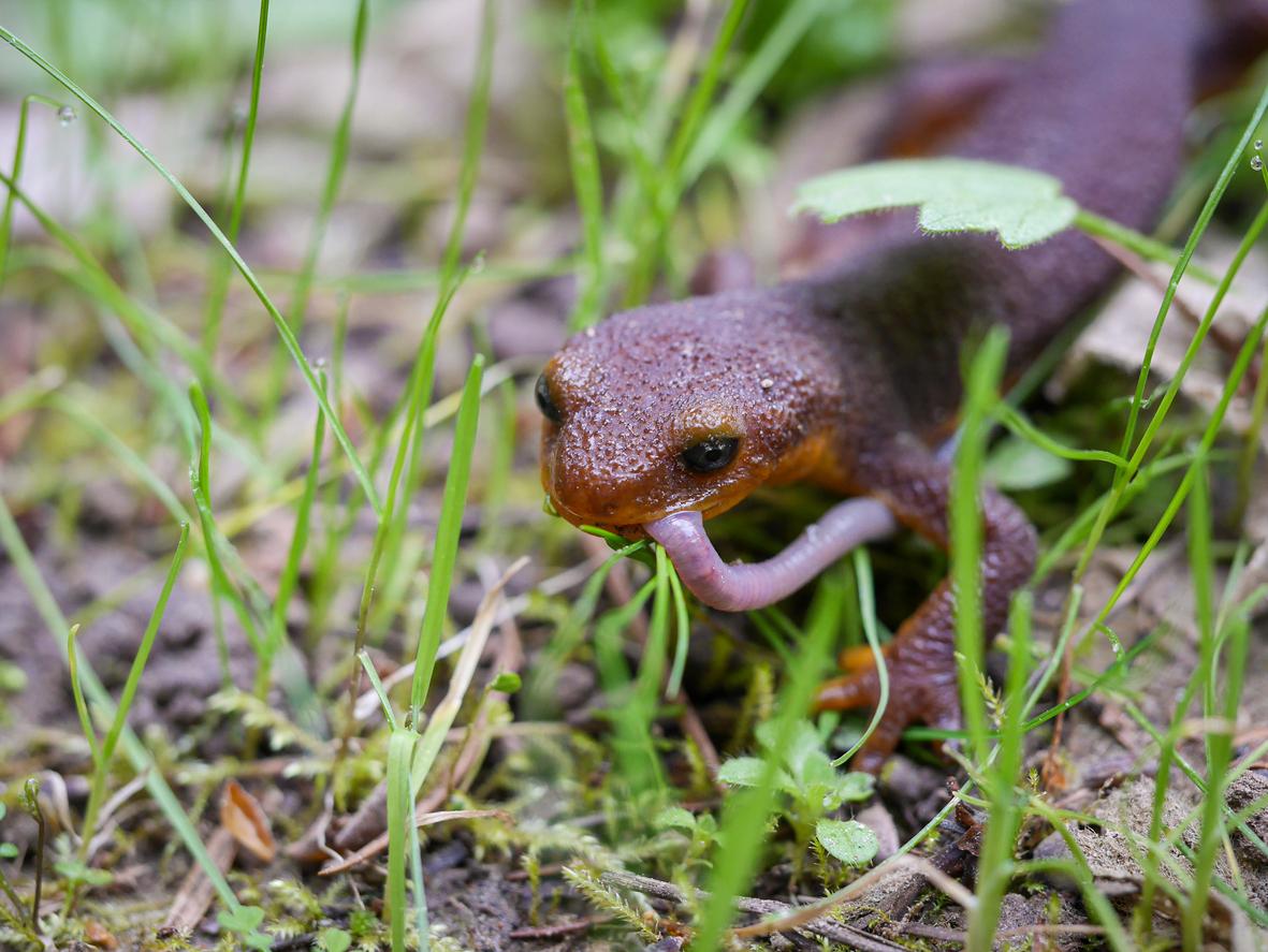 Alimentación de la salamandra gigante de Idaho (Dicamptodon aterrimus)