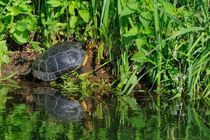 Conocemos como tortugas de río a aquellas que viven asociadas a fuentes de agua dulce, como los ríos, los lagos o los pantanos. Algunas de ellas, incluso, pueden vivir en aguas algo saladas, como los estuarios o las marismas. Por este motivo, como ya habrás imaginado, lo que comen las tortugas de agua dulce también depende de cada especie, de dónde viven y del alimento existente.