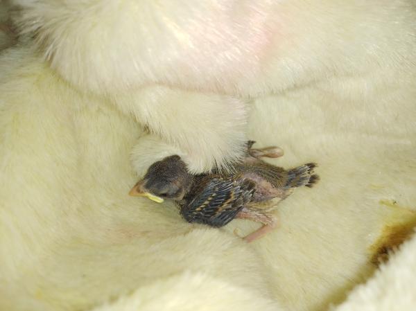 Hola, ayer me encontré con 4 pajaritos silvestres, tienen plumas y saben nadar. Pero son pequeñitos. Los dejé en un lugar para que jugaran pero luego vi que un pájaro grande se llevó a uno. Y otro se lo llevó un ratón. Ahora hay 2 y estoy muy triste por los otros, los puse en una caja y empezaron a comer. Pero se van a morir de el aburrimiento, tampoco se que especie de pajarito será. Aquí le muestro una imagen