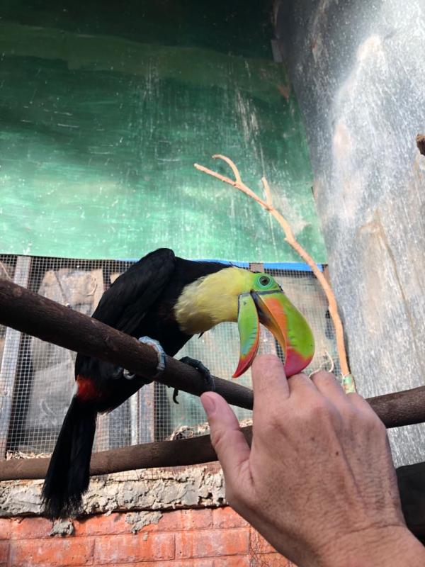 Buenos días, tengo un Tucan de mascota, fue criado a mano, es muy dócil y cariñoso, lo alimento con variedad de frutas; banano, papaya, sandia, al medio día le doy de mi mano, aproximadamente unas 3 o 4 onzas de poyo, carne de res o puerco, quisiera saber si lo estoy haciendo bien. Muchas gracias por su atención.