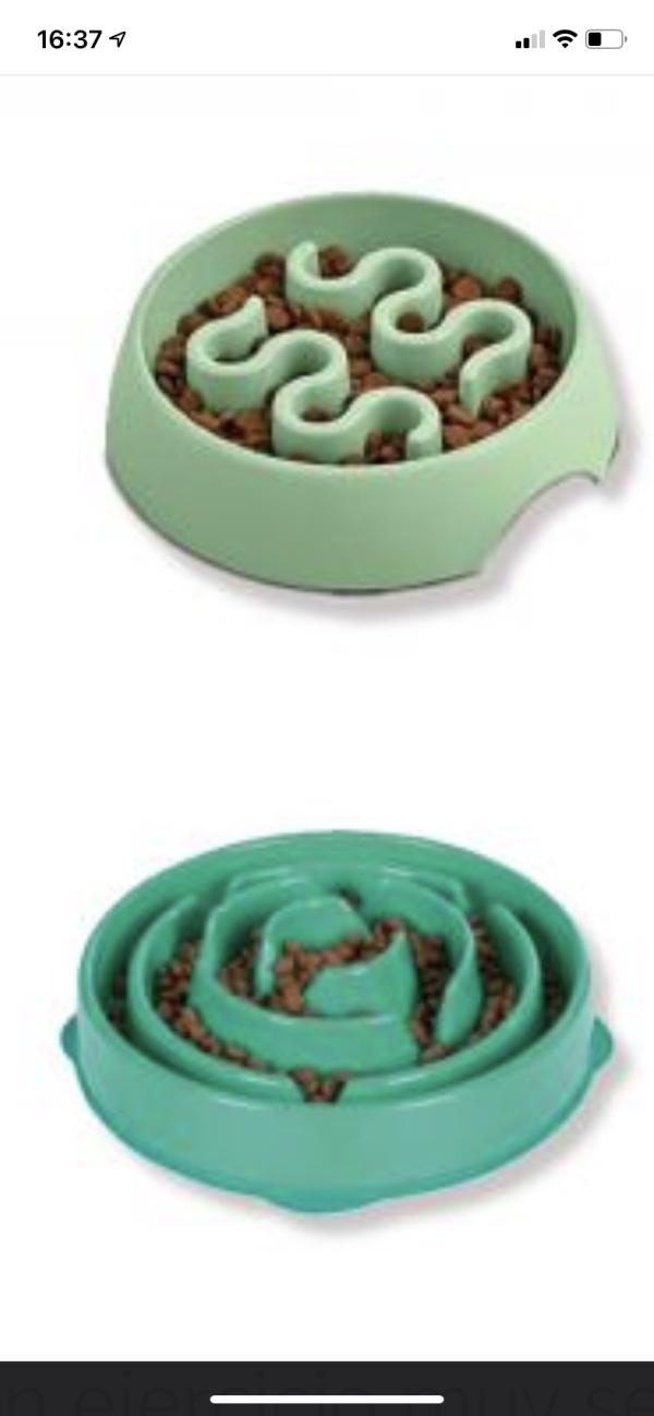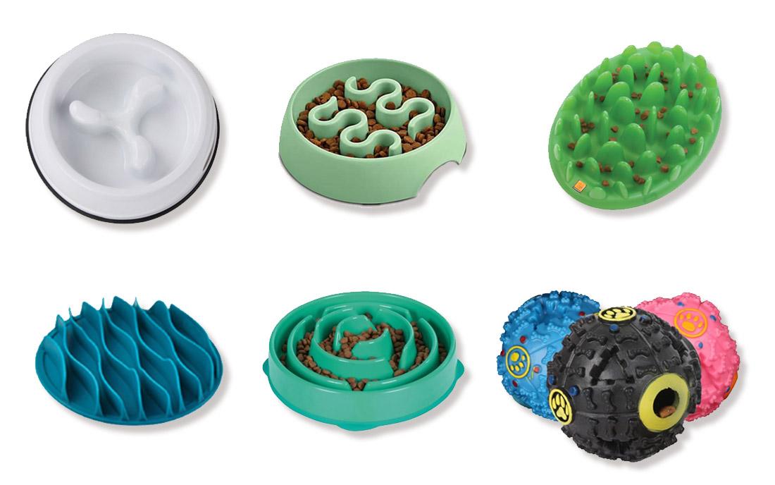 En el mercado encontramos cuencos para perros ansiosos, se trata de comederos que disponen relieves y formas en la base, impidiendo que el perro pueda engullir o comer de forma voraz. Generalmente se trata de productos económicos y muy fáciles de encontrar, ya sea en una tienda on-line o bien en una tienda física de productos para animales.