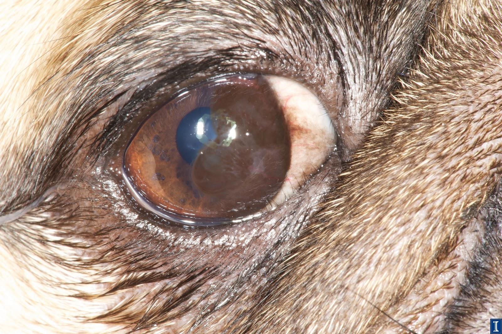 La córnea es una estructura ocular transparente que cubre el iris y la pupila y que permite que los rayos de luz penetren en el interior del ojo. Cuando la córnea sufre un proceso inflamatorio de carácter crónico (prolongado), esta pierde su transparencia y adquiere una pigmentación oscura, proceso que recibe el nombre de queratitis pigmentaria o melanosis corneal. Se trata de una alteración a la que se debe prestar atención, puesto que indica la existencia de un problema ocular de carácter crónico y, además, puede ocasionar la pérdida de visión del animal.