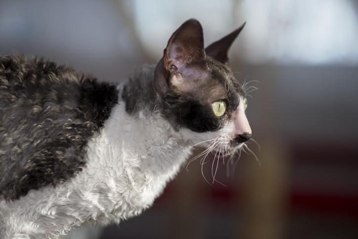 El devon rex es oriundo de Devon, ciudad de Inglaterra, donde apareció en 1960. Es una raza de pelaje muy corto y rizado, el cual deja a la vista su cuerpo estilizado de patas delgadas. Lo caracteriza, además, que sus ojos almendrados resaltan dándole una expresión curiosa y atenta.