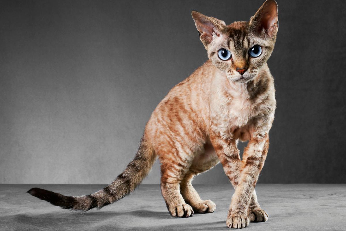 Esta raza de gatos con pelo rizado se originó de forma espontánea en el condado de Devon (Inglaterra), durante la década de los 60. Su característico manto ondulado o rizado es el resultado de mutaciones naturales, y en él se admiten todas las tonalidades y patrones de colores.