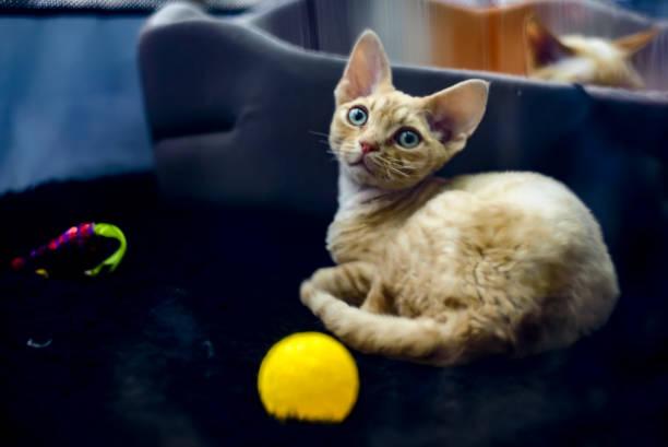 Es la más antigua de las razas de gatos con pelo rizado que se conocen en la actualidad. Sus orígenes remontan a la ciudad de Königsberg – actual Kaliningrado -, que fue capital de la Prusia Oriental hasta 1945. Los primeros cachorros habrían nacido de un cruce entre un gato azul ruso y un gato angora durante los años 1930, y los pelos ondulados se atribuían a una mutación genética natural. Pero, sería en Alemania y durante la década de los 50, que surgiría un puntual interés en este tipo de pelaje. Y con el propósito de perpetuarlo, se cruzaría a una gata nativa de pelo rizado con un macho de la raza cornish rex (de la cual hablaremos a continuación). Este sería el inicio de la crianza sistemática de la raza de gatos que hoy conocemos como german rex o rex alemán. No obstante, se sabe que los gatos con pelo rizado ya estaban presentes en Alemania, Rusia y otros países europeos al menos dos décadas antes.