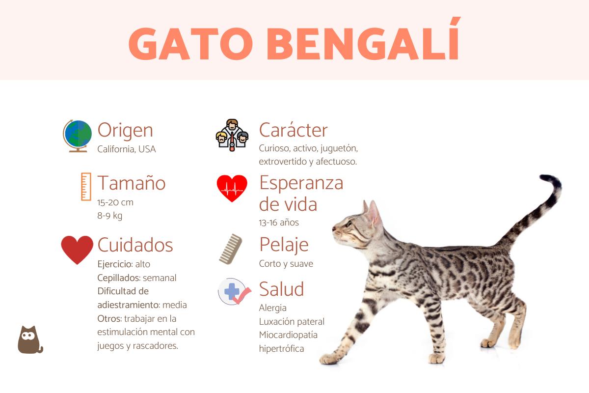 Si estás buscando un gato bengalí en adopción y tienes dudas acerca de su carácter, tamaño o salud, has llegado al sitio adecuado, en esta ficha de razas de gatos de ExpertoAnimal te explicaremos todo lo que necesitas saber sobre la raza de gato de Bengala o gato bengalí.