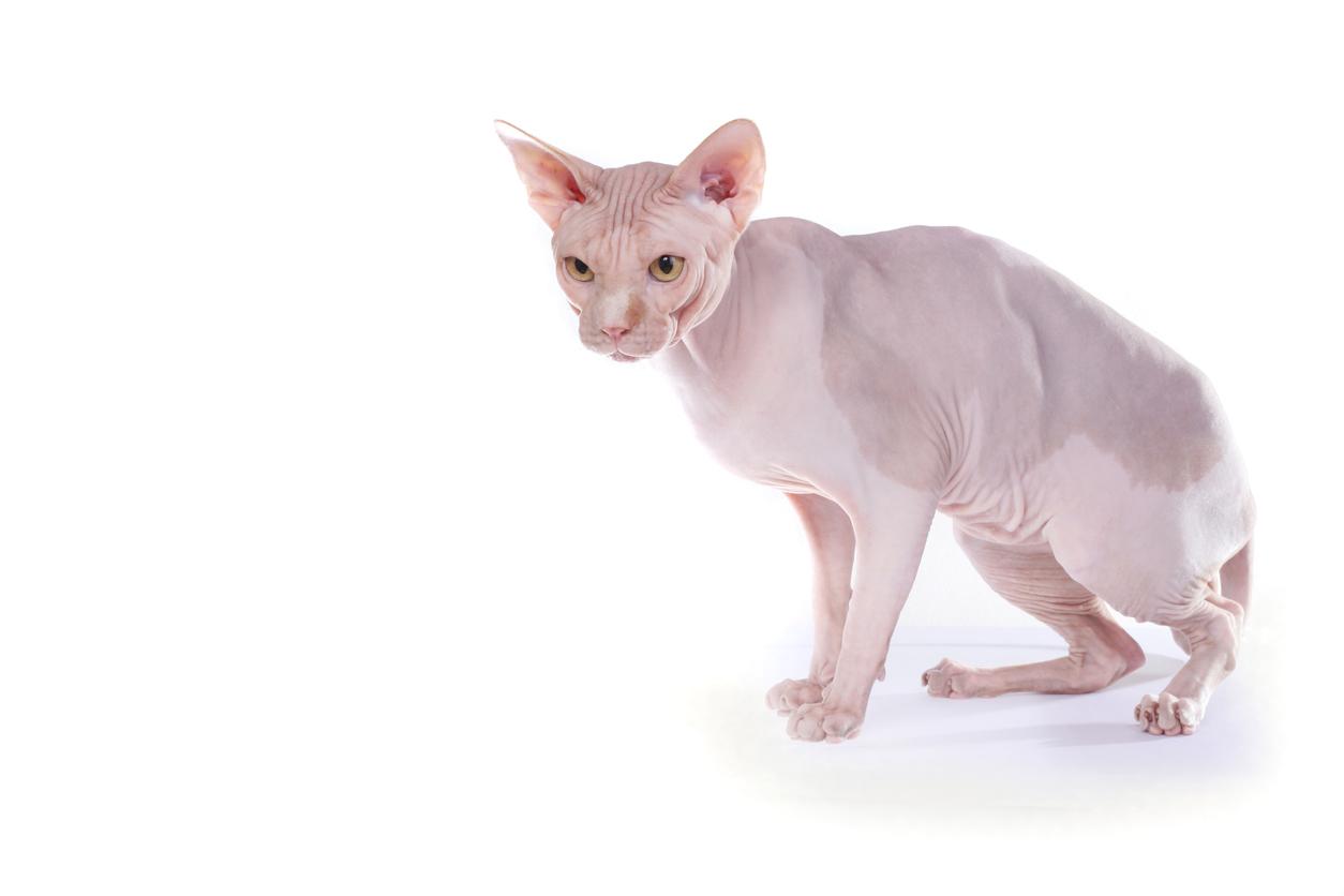 Estos gatos carecen de pelo, por lo que no tienen problemas de formación de bolas de pelo ni requieren de un cepillado frecuente. Sin embargo, la ausencia de pelo perjudica mucho a su piel, que se encuentra totalmente expuesta al sol, al frío, las alergias y a los patógenos. Para evitar que se quemen, se les debe aplicar protector solar. En los meses más fríos, la casa debe encontrarse a una buena temperatura y ponerles abrigos para gatos o mantas para que no sufran las consecuencias de las bajas temperaturas. Para higienizar su superficie corporal debido a que se acumula mucha grasa y detritus al carecer de pelo, se les puede pasar toallitas limpiadoras para gatos o paños húmedos, luego es imprescindibles secarlos para evitar humedades y que cojan frío.