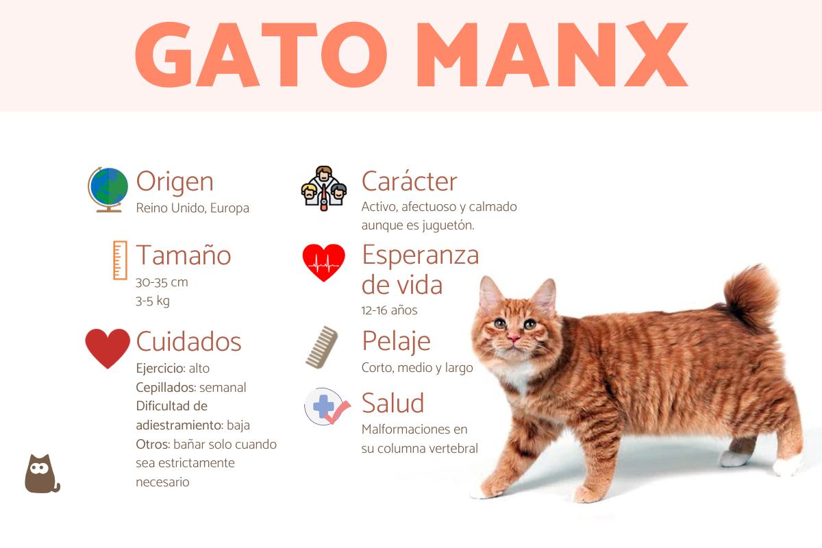 El gato manx es una de las razas de gatos más peculiares por su cola y apariencia física general. De tierna mirada y esponjoso manto, esta raza felina se ha ganado el corazón de muchas personas por su carácter equilibrado y afectuoso. No obstante, para lograr que el animal sea feliz es preciso conocer todas las características del gato manx, sus cuidados básicos, su temperamento y posibles problemas de salud. Por ello, en este artículo de ExpertoAnimal, compartimos todo lo que debes saber sobre el gato manx si te estás planteando convivir con uno o ya lo has adoptado.