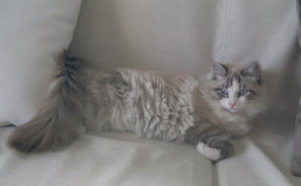 El gato ragdoll surgió en el año 1960 en California, Estados Unidos, aunque no se reconoció oficialmente la raza hasta diez años después. El cruce se hizo mediante una gata tipo angora y un macho sagrado de Birmania, lo que dio lugar a un gatito peludo, redondo, fuerte y realmente adorable. Su carácter es igualmente fantástico, hecho que se confirma con su propio nombre. "Ragdoll" se traduce de forma literal como "muñeco de trapo", y la raza fue denominada de esta forma, precisamente, por su extrema docilidad.