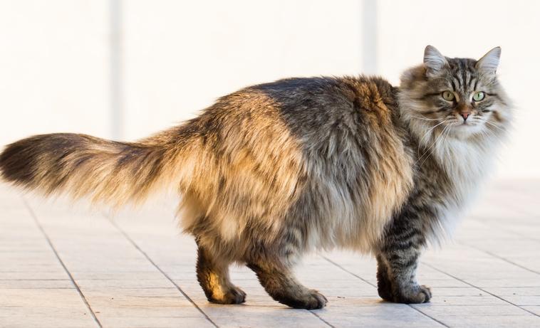 Sin duda, la característica físicas del gato siberiano más representativa es su frondoso pelaje que consta de tres capas, presentes en muchas razas, sin embargo, en esta raza felina estas están mucho más desarrolladas. Esto se debe a las drásticas temperaturas del área siberiana a la que ha de hacer frente para sobrevivir. Por ello, el pelo de cobertura es duro y, mientras que es algo más corto en las patas y el pecho, es considerablemente largo en la cabeza y el vientre. Teniendo también pelaje largo entre los dedos.