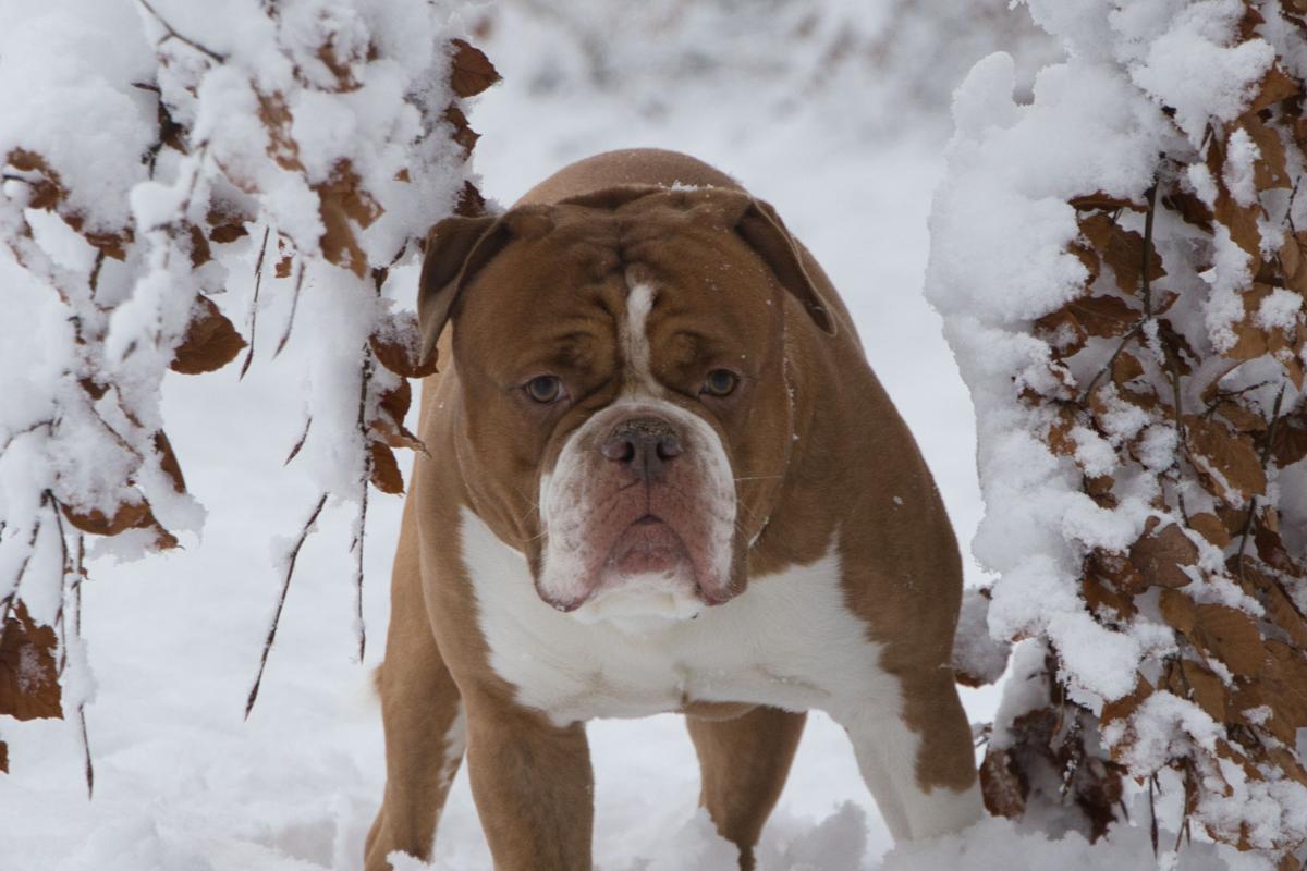 El físico del olde english bulldogge nos recuerda a sus ancestros: el bulldog inglés. No se trata de una raza de perro con O natural o no creada por el ser humano. Todo lo contrario, el olde english bulldogge se creó con la finalidad de recuperar el bulldog original pero con menos problemas genéticos.