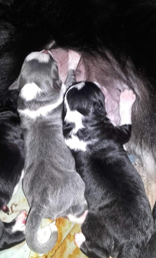 Hay muchas otras razas grises. Yo por ejemplo tengo un border collie gris y balnco. En la foto está de recién nacida entre dis hermanos negros