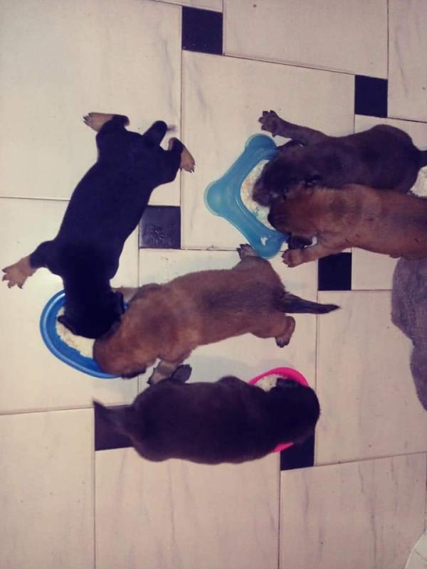 Hola, me han enviado esta foto de unos bebes de 1mes y no sabemos qué raza serán, ya que los encontraron en una caja en la basura y voy a adoptar uno. Solo para saber sobre él. Si pudieran decirme si sería muy grande o pequeño, no sabemos nada aún. Muchas gracias