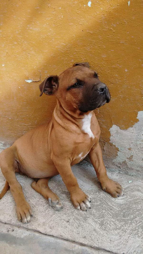 Buenas noches disculpe quisiera que me ayuden a identificar que raza es mi perrita me la obsequiaron. Me dicen que la mamá es pitbull. Les agradezco de antemano por su ayuda.